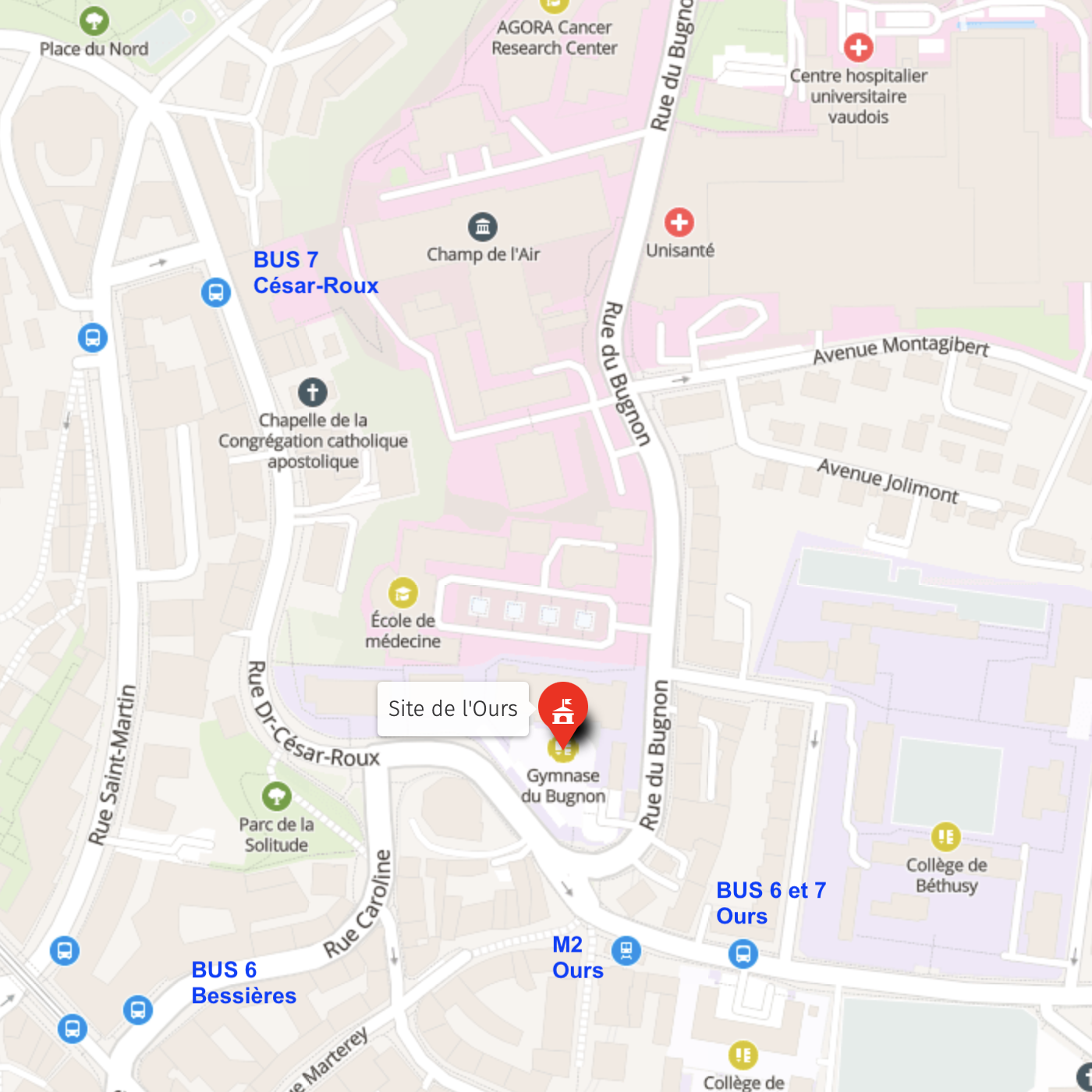 L'accès au site de l'Ours se fait principalement par les bus 6 et 7, et le métro M2 depuis l'arrêt "Ours".